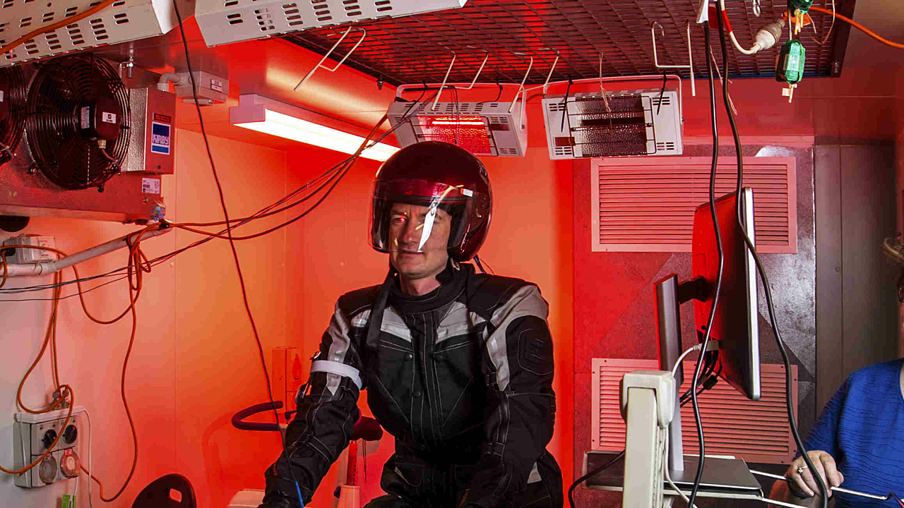 Work has now started in a climate chamber at UOW to discover just how hot motorcyclists become when riding during a simulated hot summer’s day, wearing full protective clothing and equipment.